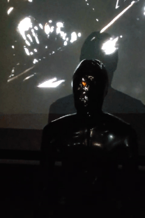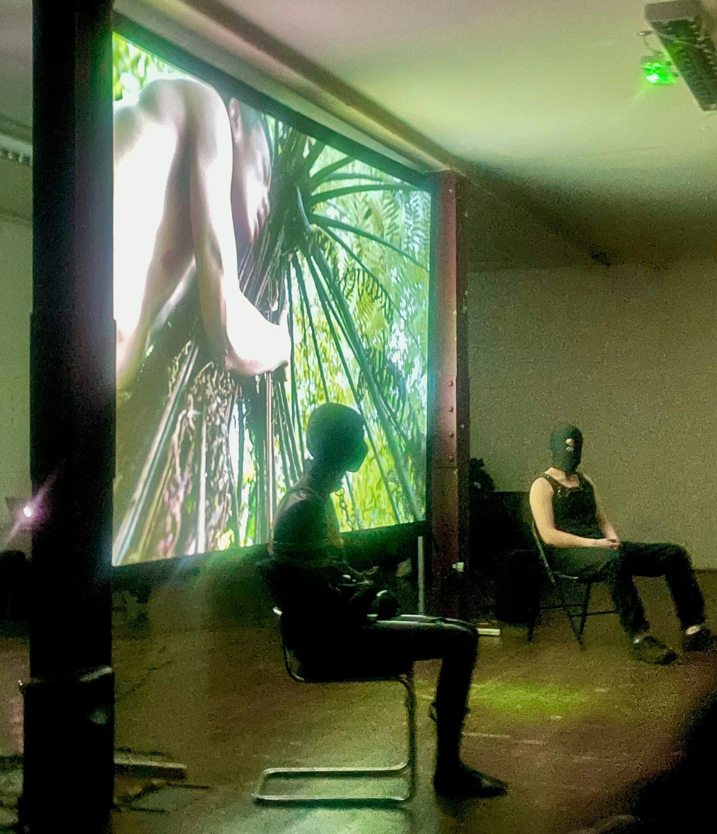 I presented ‘out in the world’ in a different format for this event — the film was projected both on a screen and onto the rubbery face of a gimp.